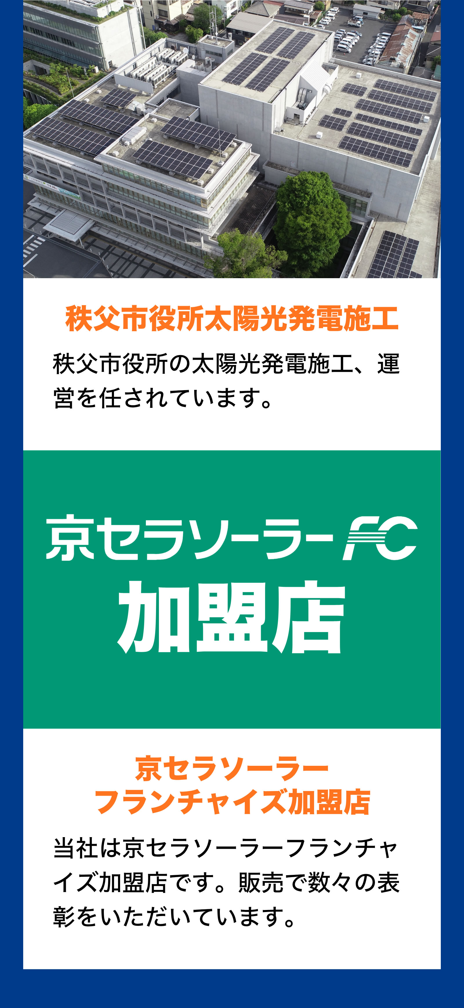 熊谷・秩父で京セラ太陽光発電パネルを専門に取り扱っているのは当店だけです