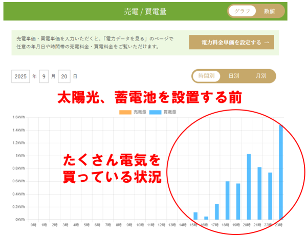 電気をかなり買っていることがわかります。 ↓ ↓ (6kwhくらい買っている)