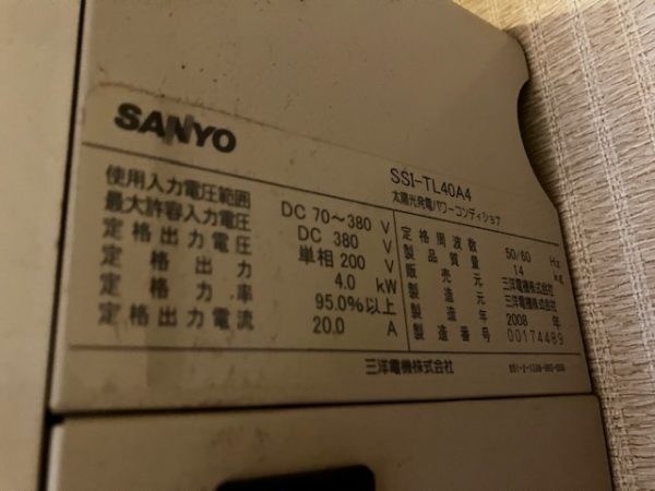 さて、本題のパワコンについてですが、サンヨー(三洋電機)は太陽光発電システムの販売事業を現在は行っておりません。