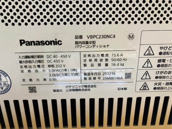 ↓↓太陽光パネル容量に合わせてVBPC230NC4パワコンを設置しました。